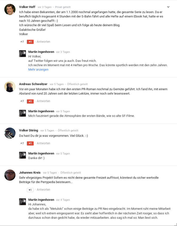 Martin liest sich seit dem 1. Januar 2017 vom ersten Heft an durch die Perry-Rhodan-Heftserie und hat sich vorgenommen, mit dem Heftehaufen ein öffentliches Lesetagebuch zu führen.
