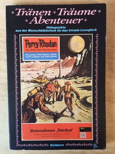 Das Taschenbuch selbst ist auf recht dickem Papier gedruckt und gibt den Hefttext auf 82 einspaltig gedruckten Seiten wieder. Interessant finde ich das Nachwort der Herausgeber, das einen kurzen Abriss über die Perry-Rhodan Serie liefert und dabei natürlich auch die leidige Frage nach der Gefahr der Rhodanlektüre für die Leserseele nicht außer Acht lässt. Im Gegensatz zum berühmten Monitorbericht aus dem Jahr 1969, einem Meisterwerk des tendenziösen Journalismus, wird der Frage nach der Gefährlichkeit der Scheerschen Gedanken mit einem gewissen Augenzwinkern nachgegangen. Das ist durchaus lesenswert.