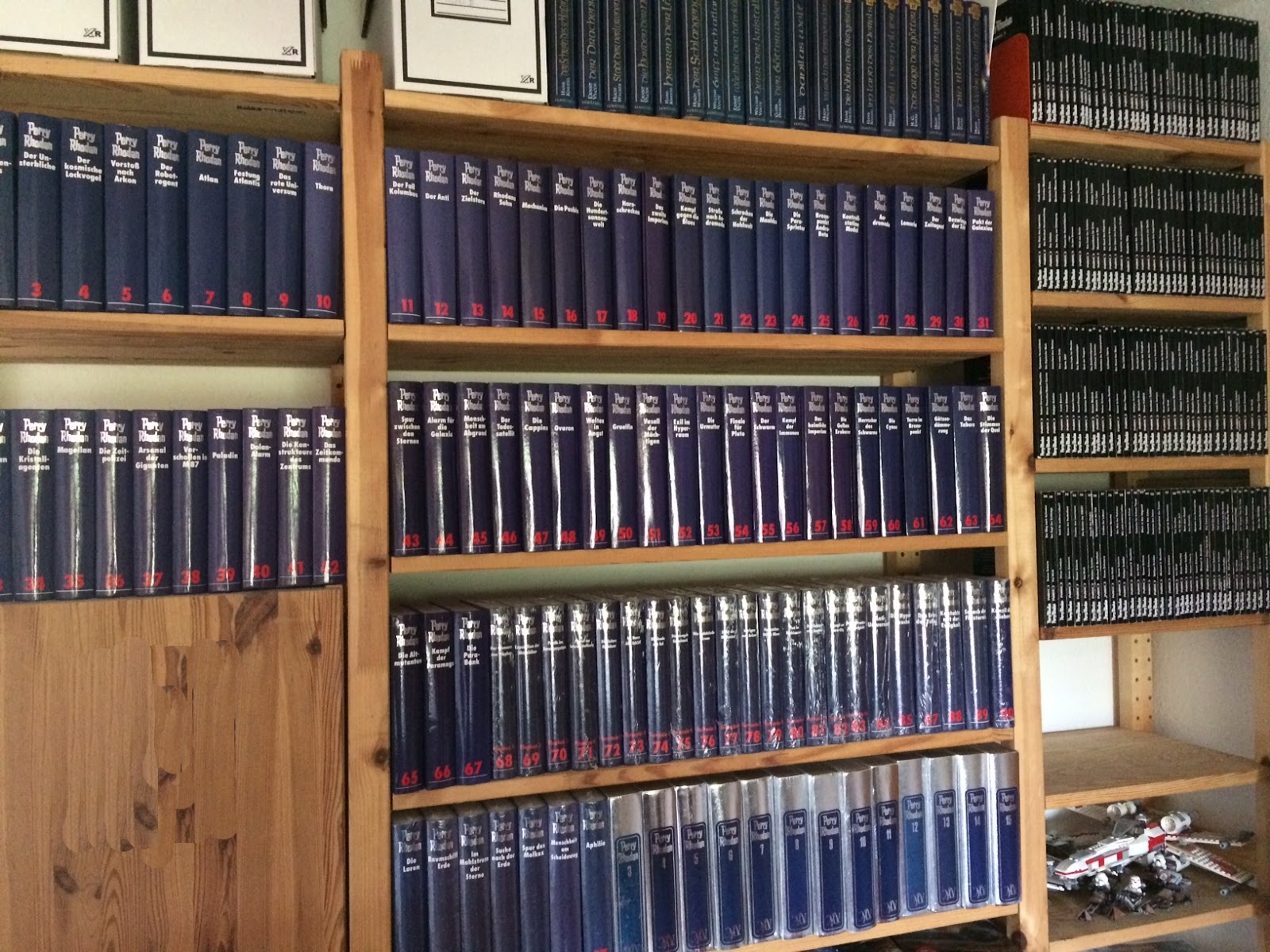 Die Hefte nehmen fast zwei Regale ein, dazu gibt es Platz für Mythor, Dragon, Neo und die Weltbildausgabe, von denen ich die Bände 1-97 kürzlich für sehr dünnes Geld erwerben konnte.
