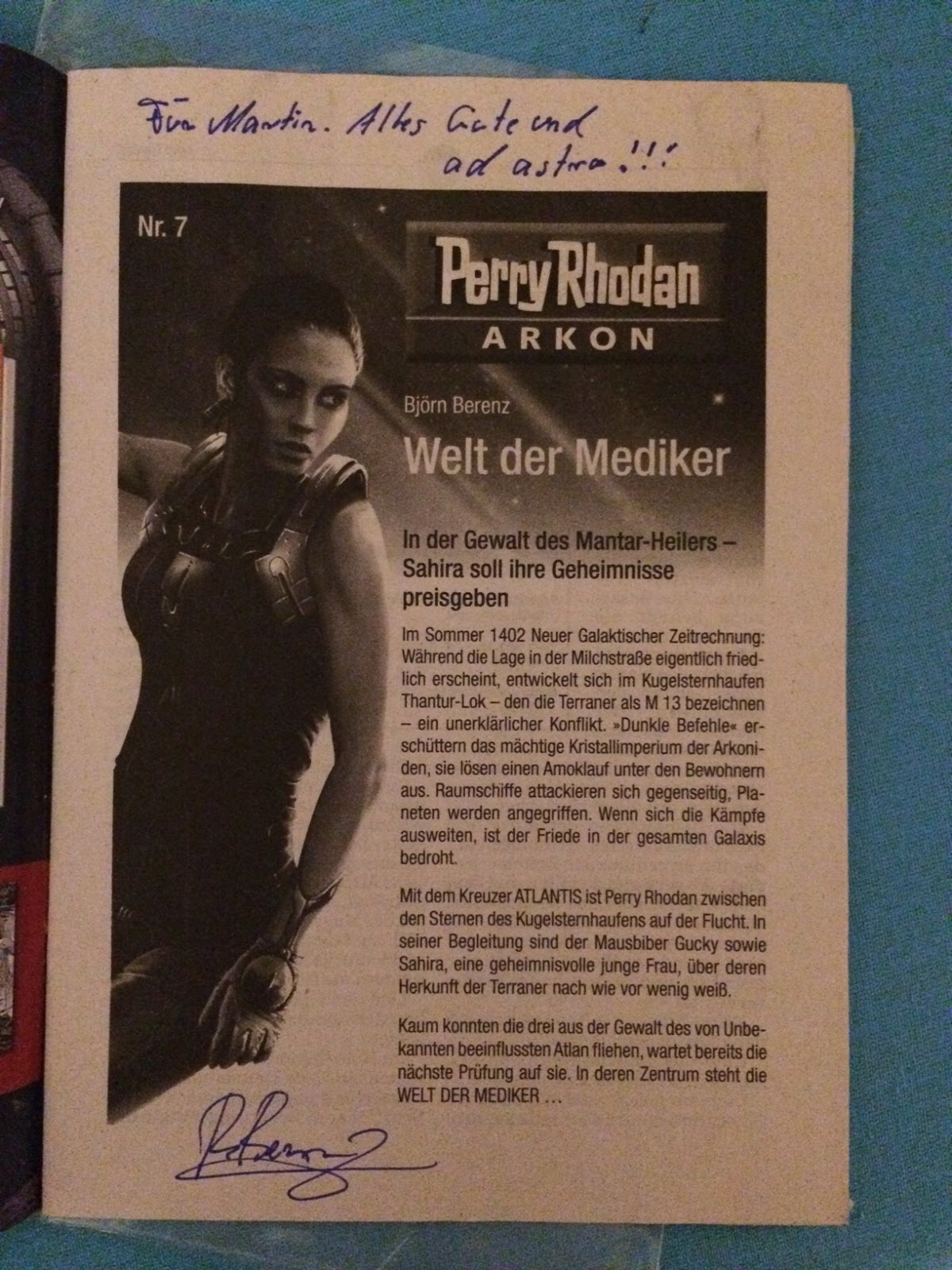 Einige Tage vor der Lesung kündigte Christoph mir an, dass er Björn Berenz mitbringen würde. Der ehemalige Multimediaredakteur des Unsterblichen hat weiland selbst einen Heftroman für die Miniserie Perry Rhodan Arkon veröffentlicht.